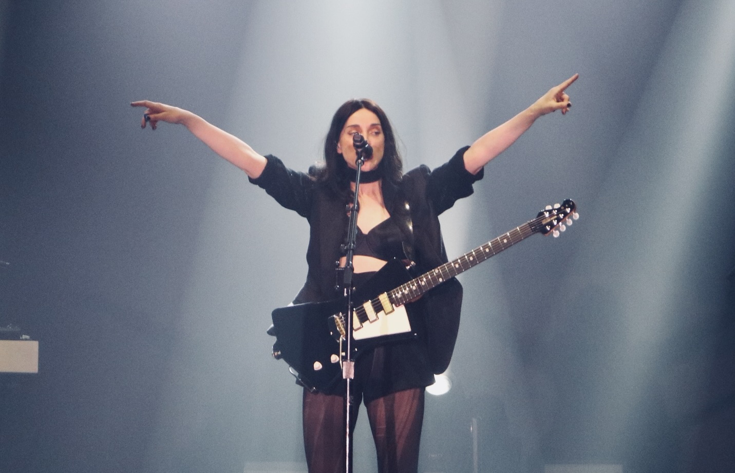 2017’s Masseduction was the second most represented album, despite the exclusion of its hit title track. After her other-worldly opening, she then picked up the pace, guitar now in hand, with “Fear the Future” and “Los Ageless”. The energy never ceased escalating, as she segued to Screaming’s latest single, “Big Time Nothing”.